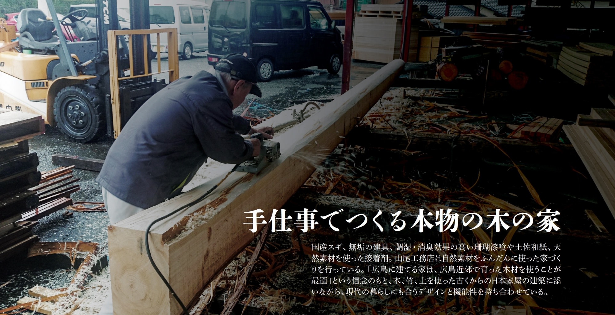 無垢の丸太を自社工場で加工 手づくり感あるれる木の家
